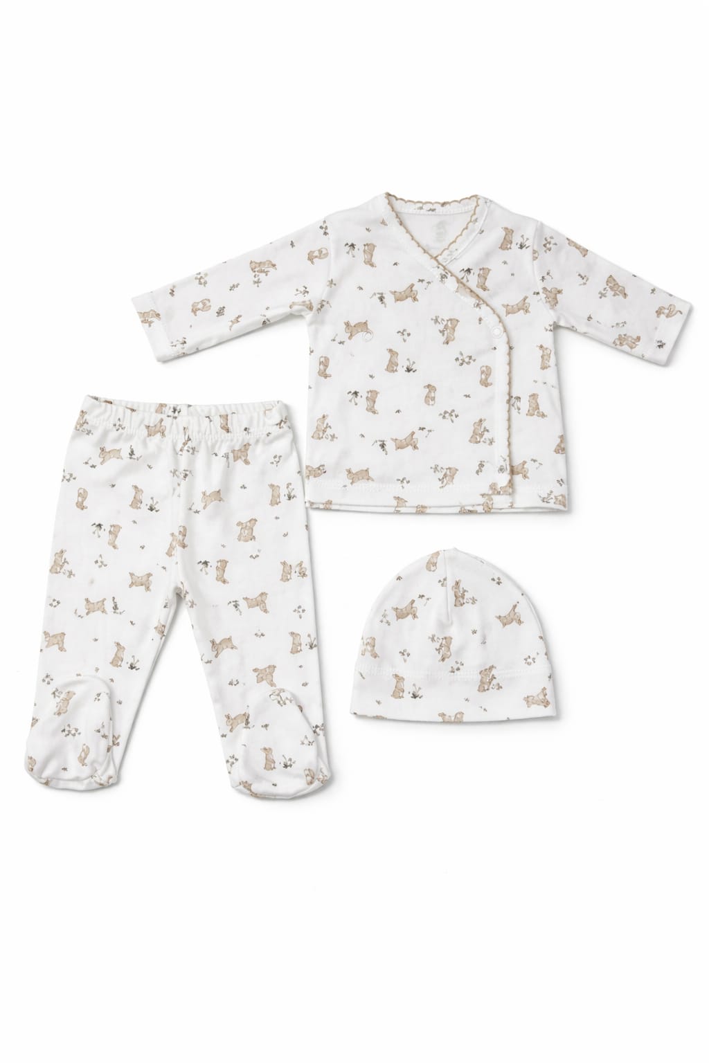 Batita, ranita y gorro de algodón estampado.