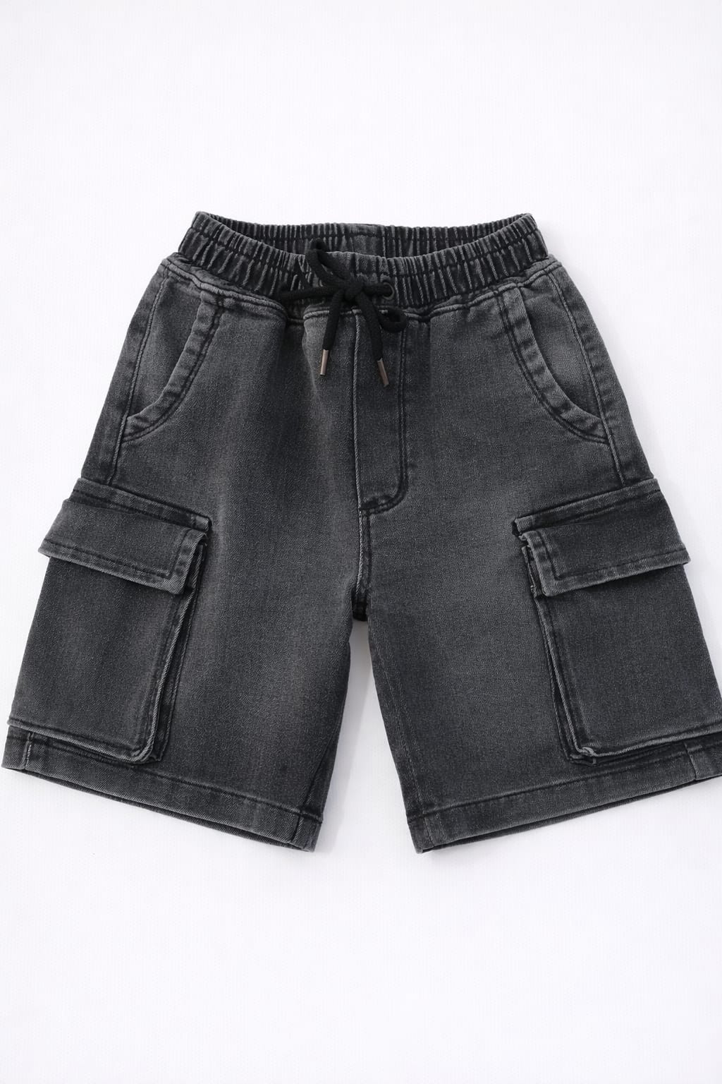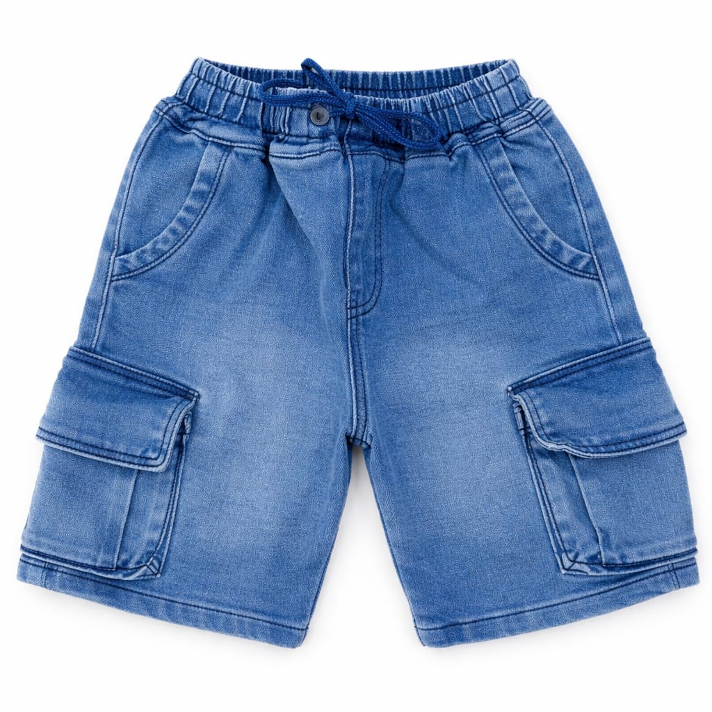 Bermuda de jean cargo elastizado. Cintura elastizada.