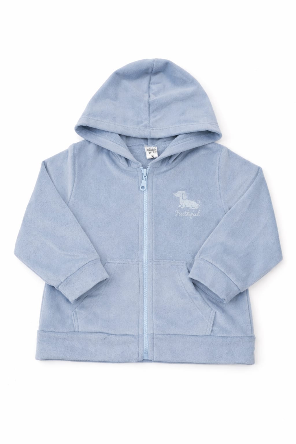Campera con capucha de plush, bordado en el pecho. Cierre plastico.