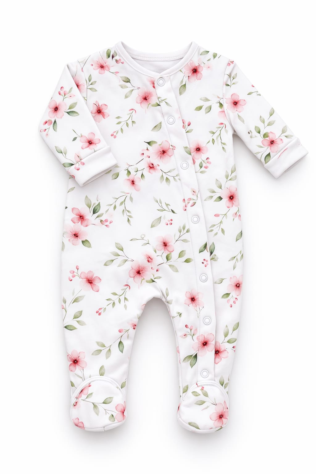 Enterito de algodón estampado con broches en la parte delantera.