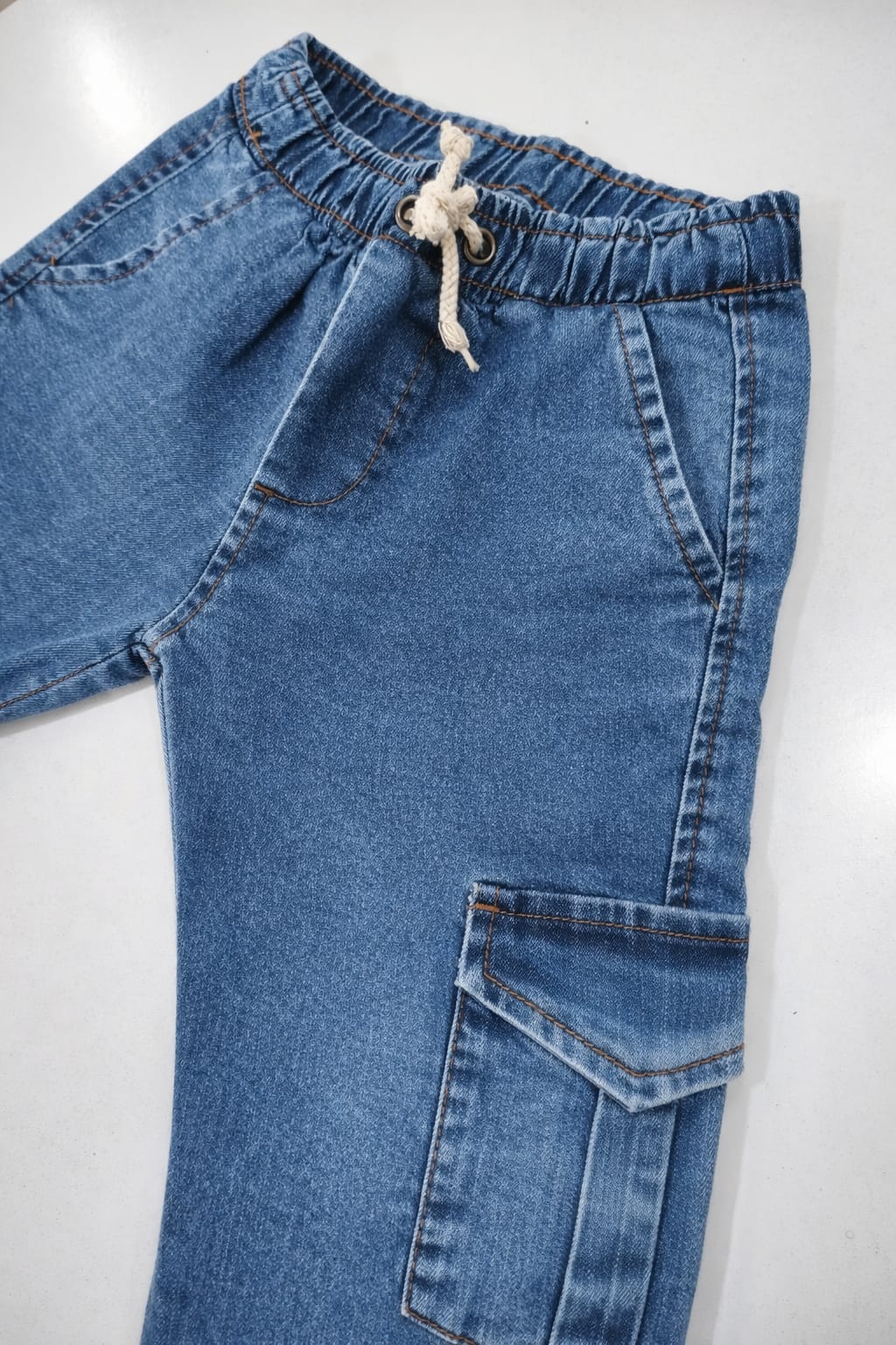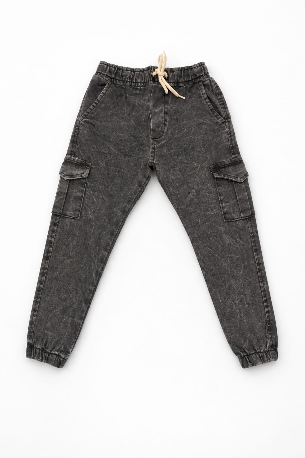 Jogger cargo de jean elastizado. Cintura y puños elastizados.