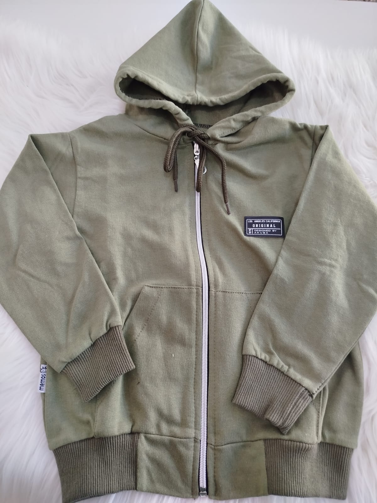 Campera de algodón rústico con capucha. Reep en puño y cintura.