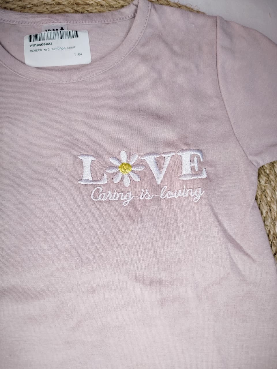 Remera mangas cortas lisa con bordado.