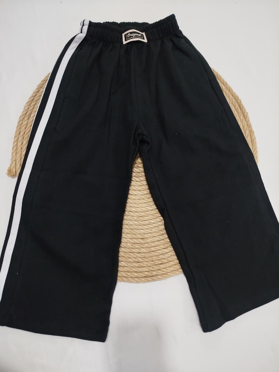 Palazo de algodón rústico con bolsillos. Con tres lineas en los costados.