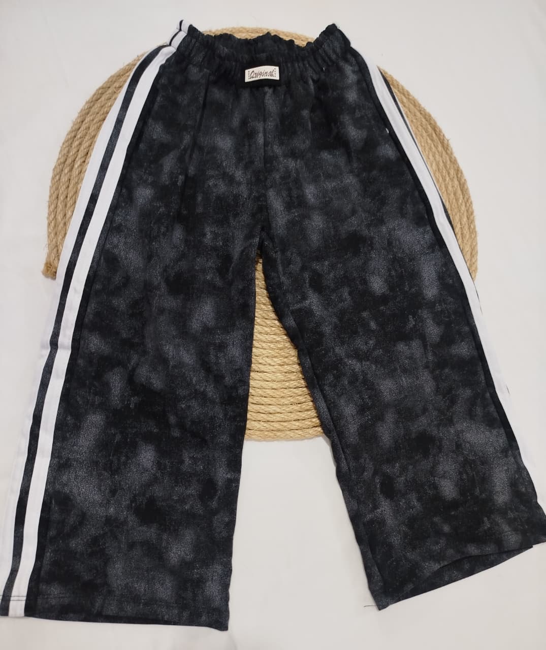 Palazo batik algodón con lycra. Con bolsillos y tres líneas a los costados.