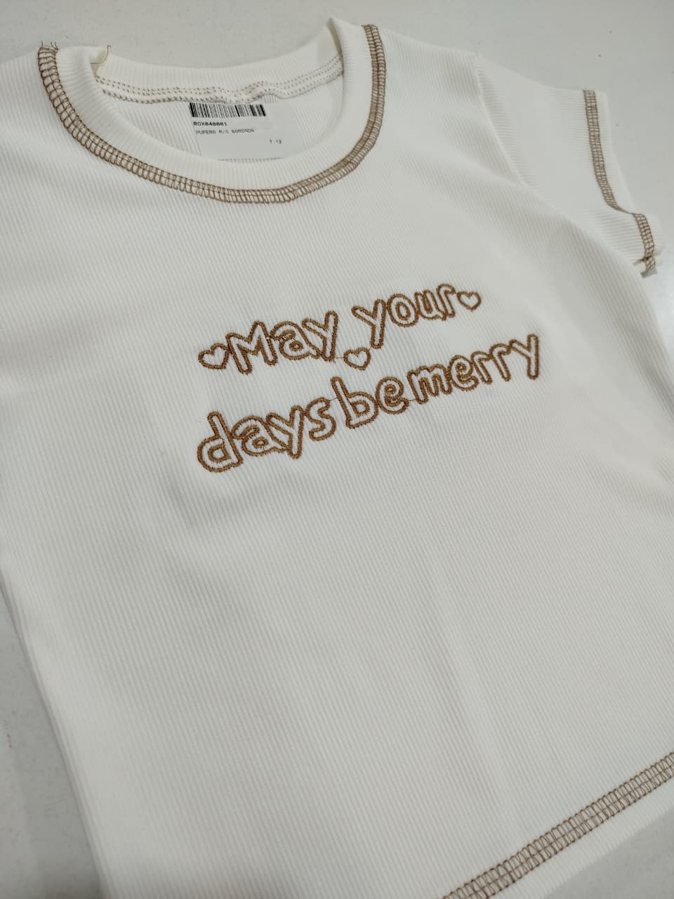 Pupera mangas corta de morley bordada y con pespuntes de color.