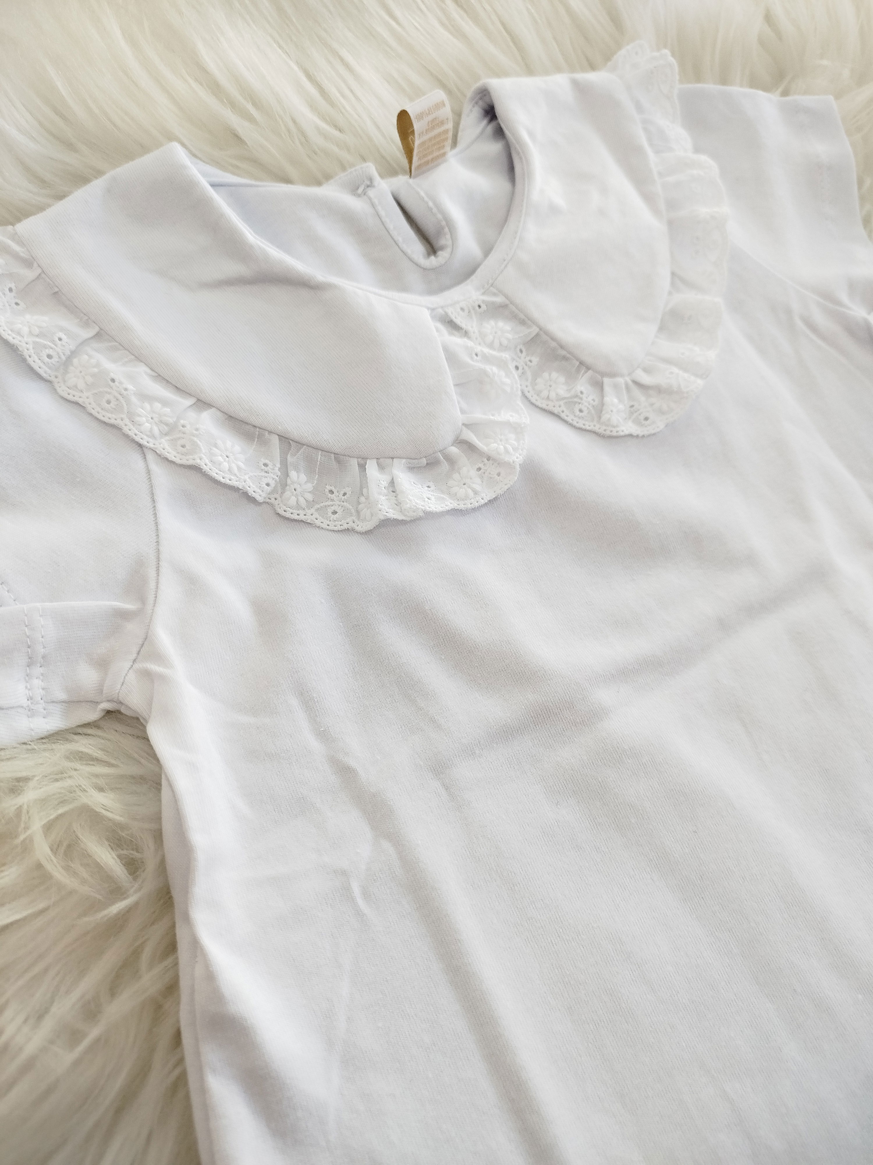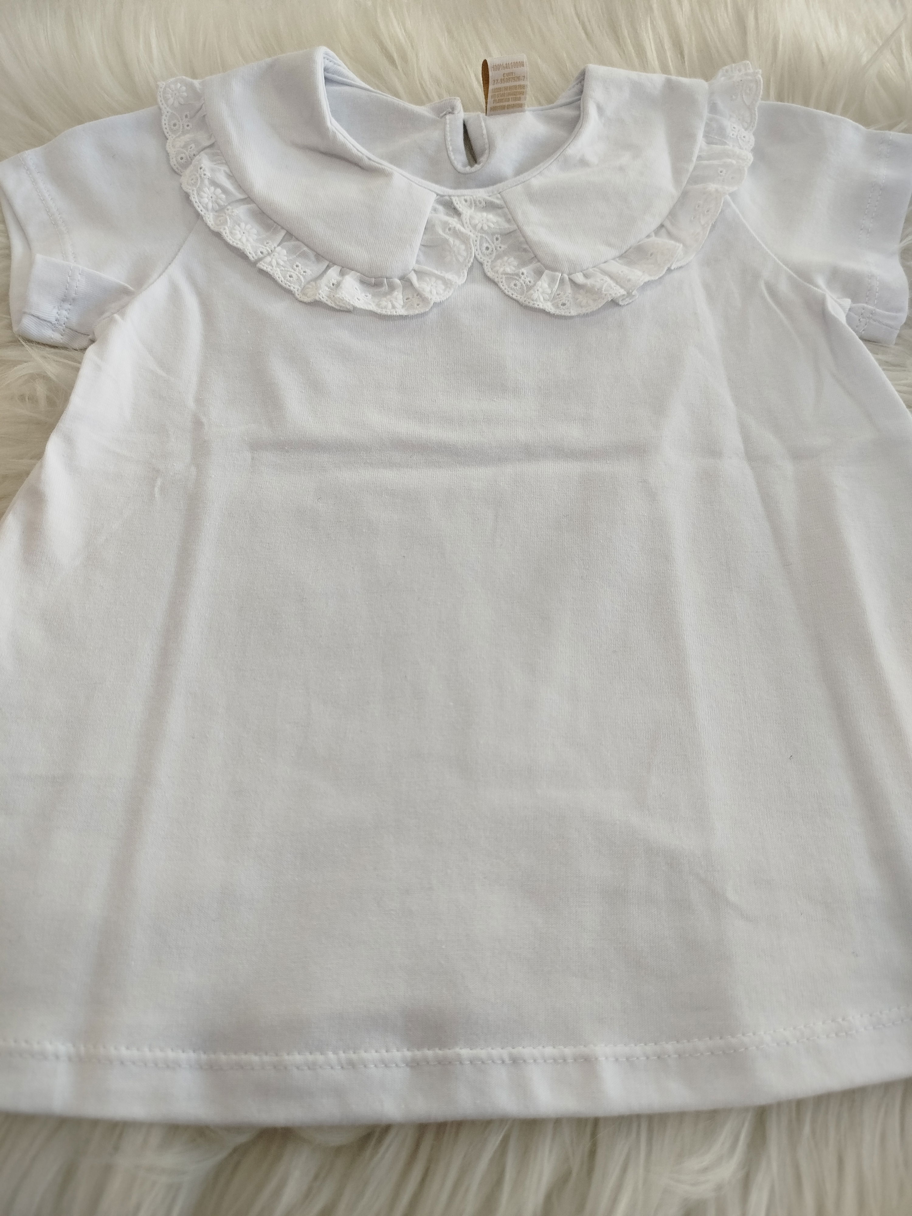 Remera mangas cortas de algodón con cuello Peter Pan borde brodery.