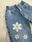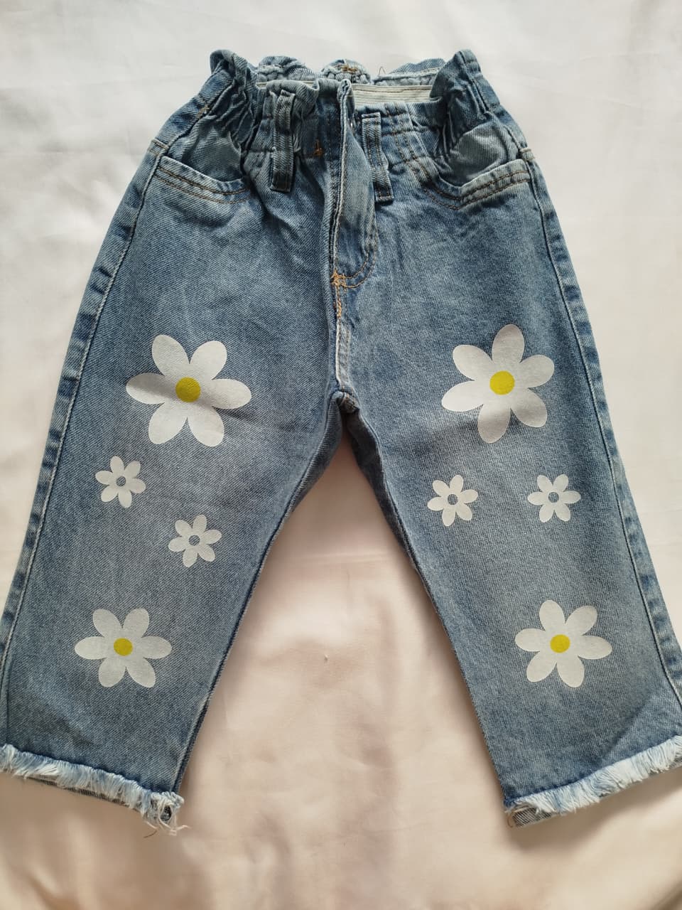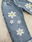 Jean wide leg con cintura elastizada, boton y cierre. Con estampa de margaritas.