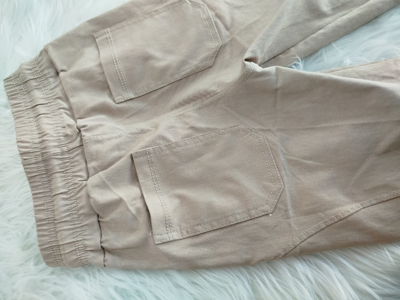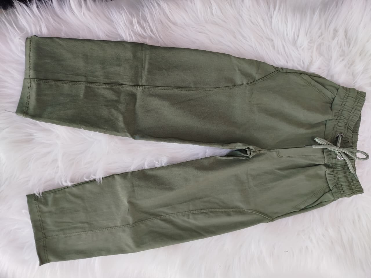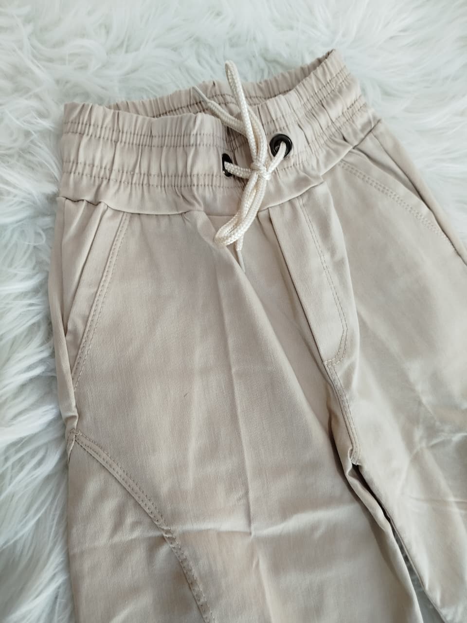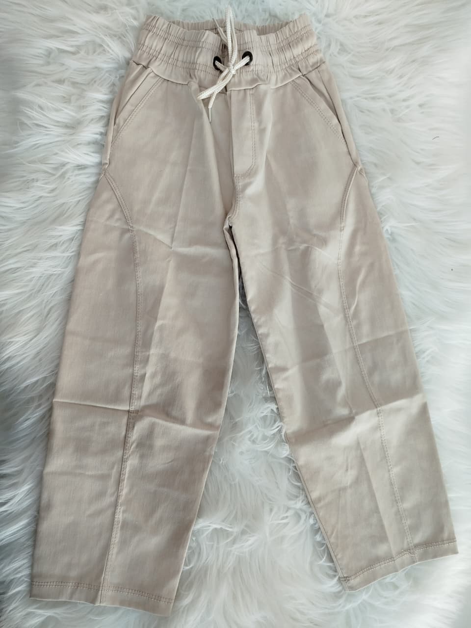 Pantalón de bengalina con costuras en pierna. Con cintura elastizada.