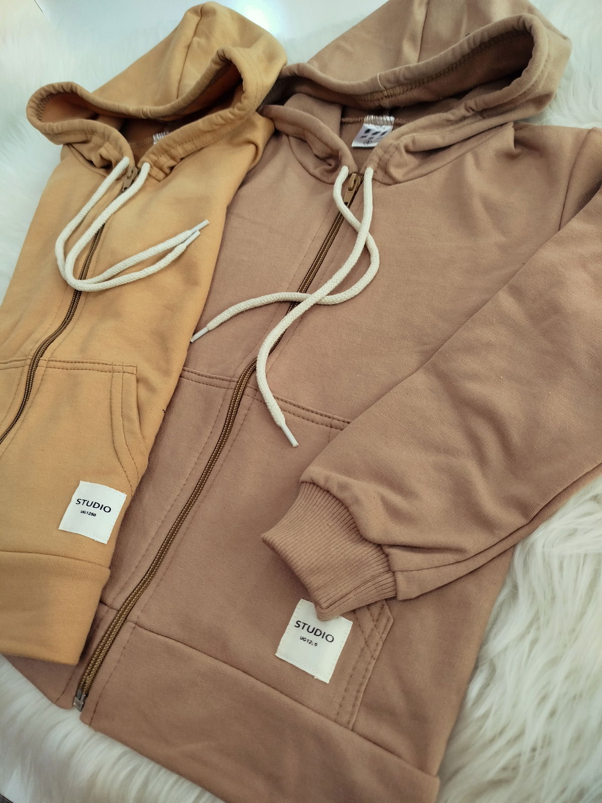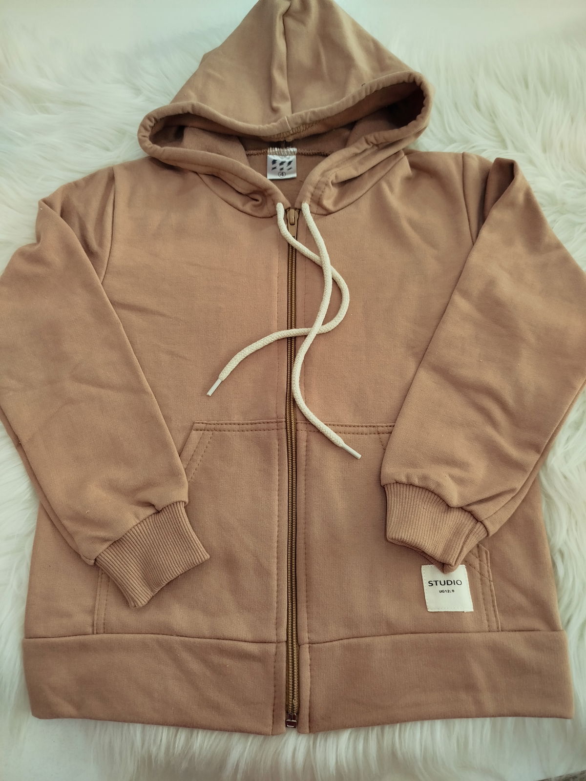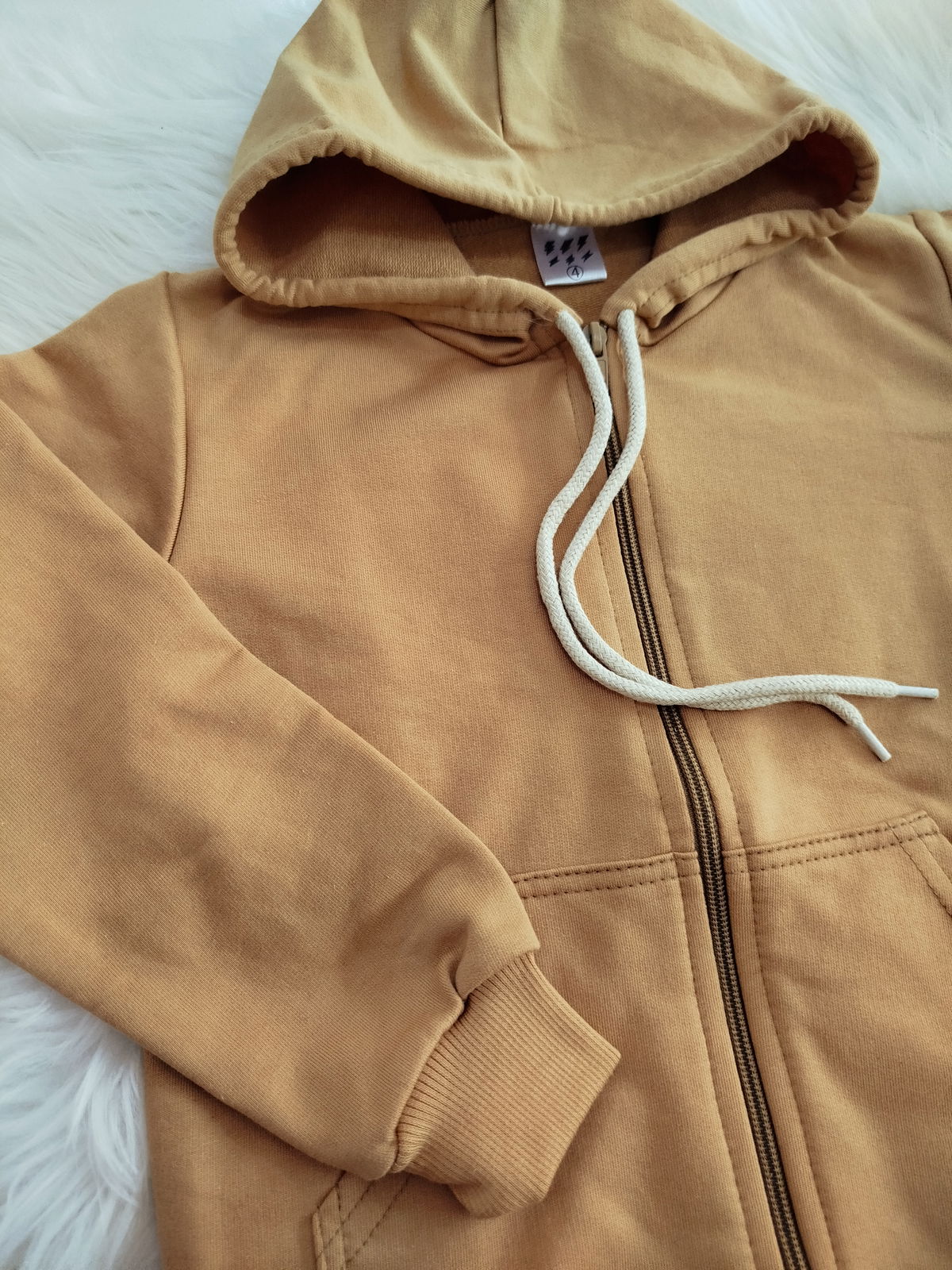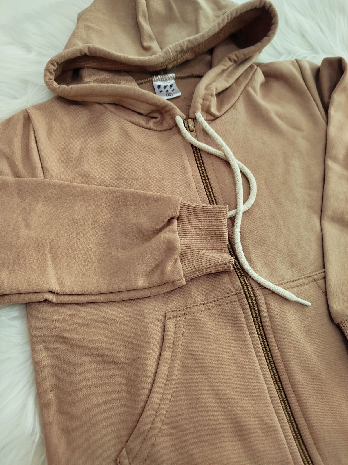 Campera de algodón rústico con capucha, reep de algodón en puño de manga y cintura.