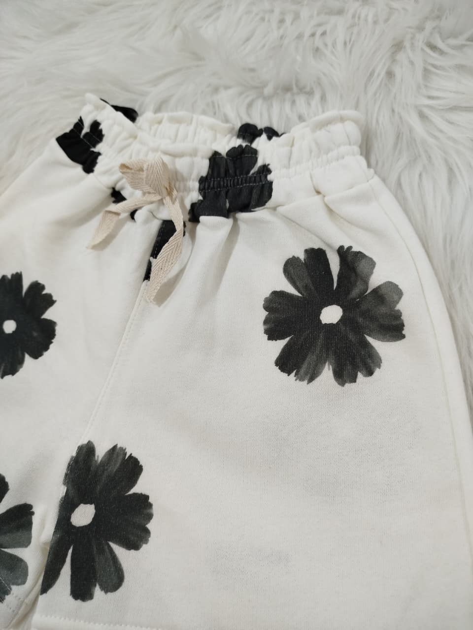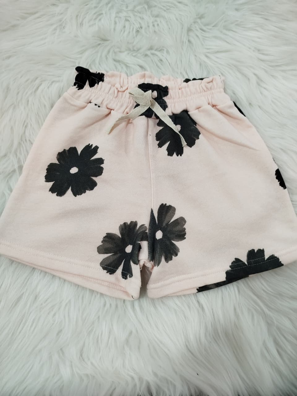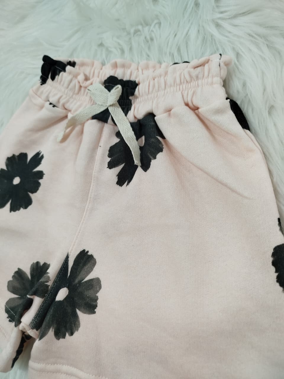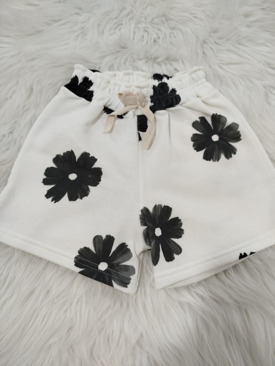 Short de algodón rústico con cintura elastizada y estampa de margaritas.