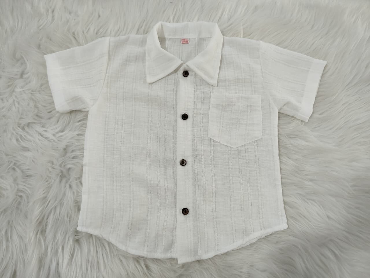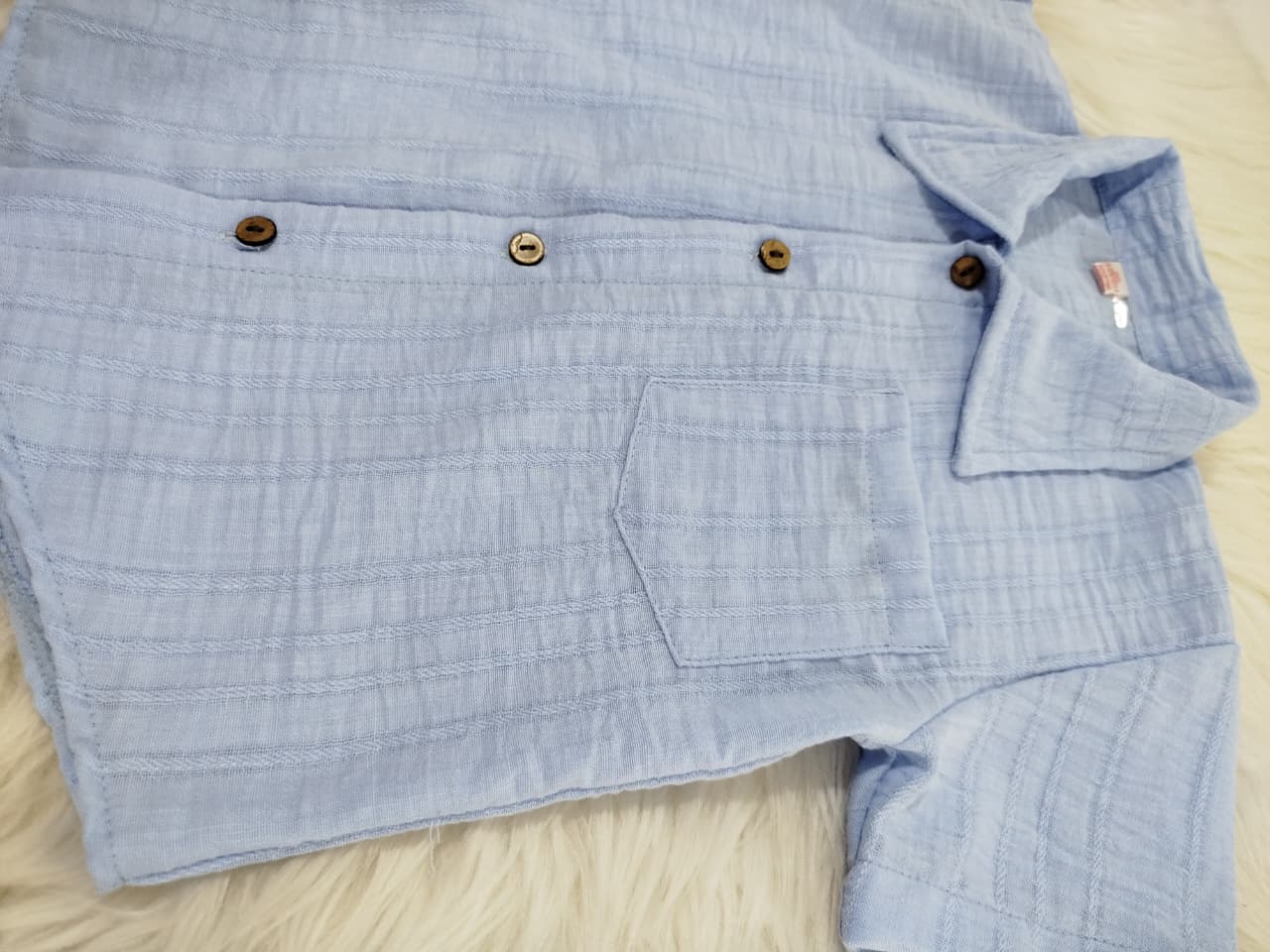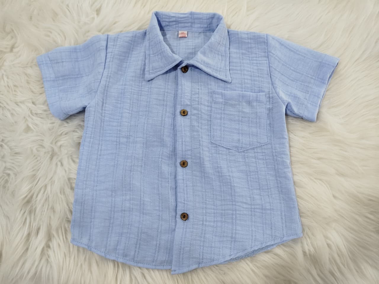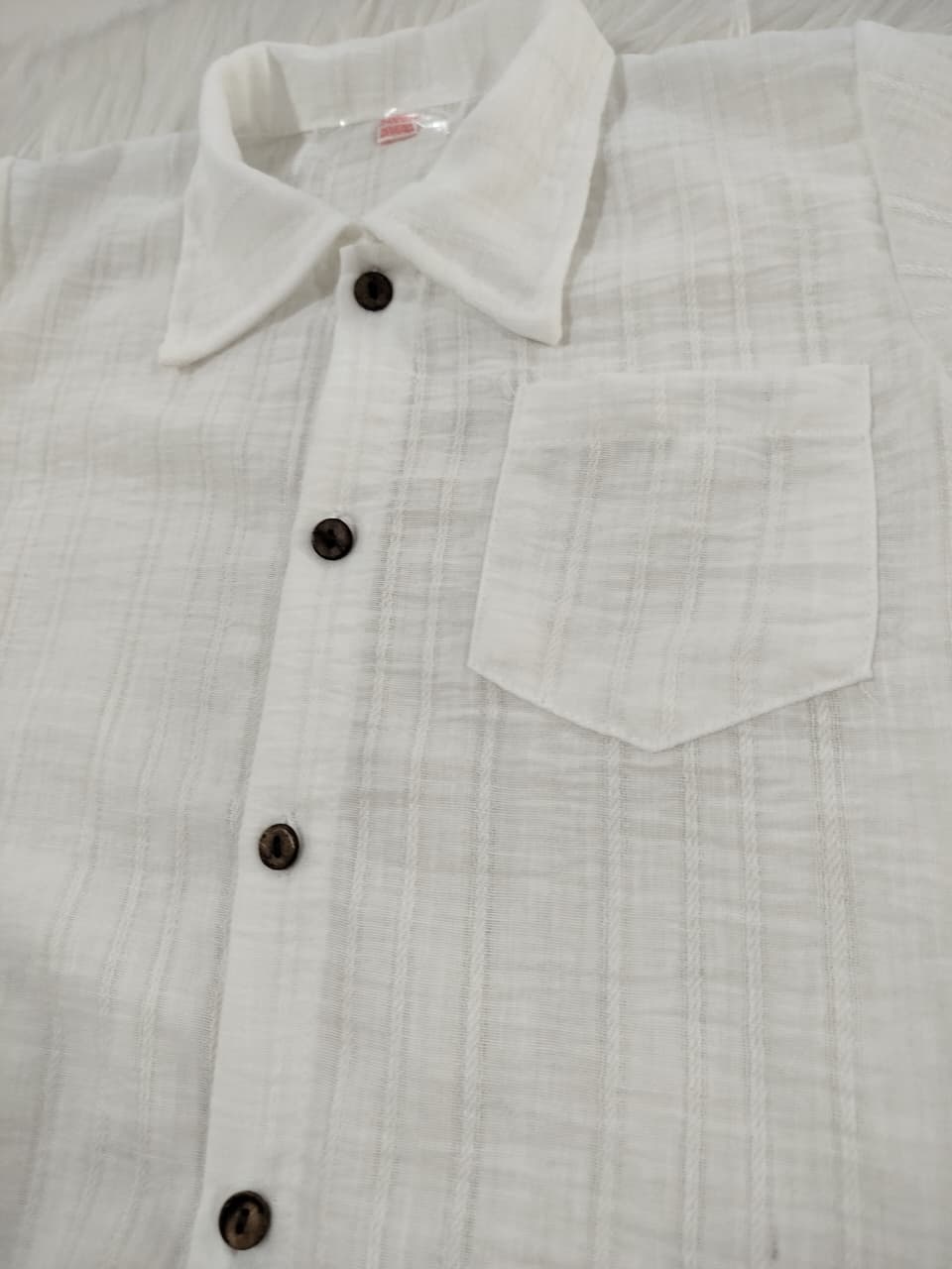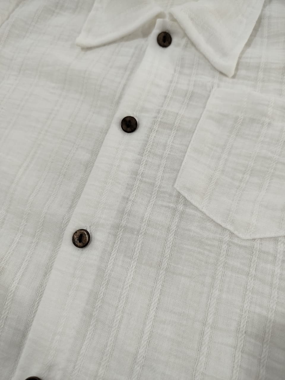 Camisa de lino con bolsillo en pecho, botones de madera.