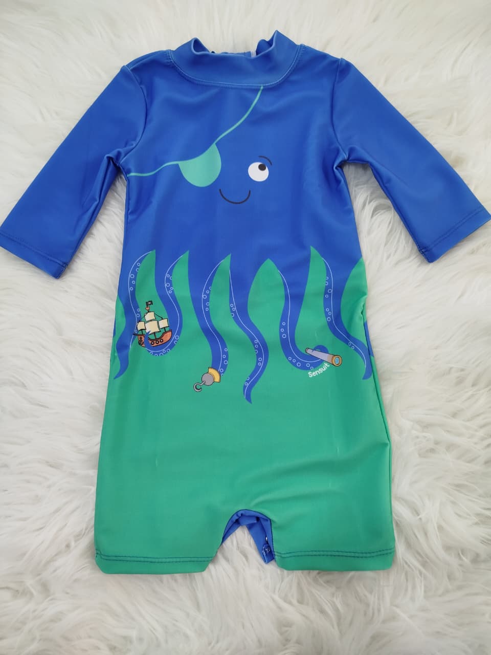 Enterito UV mangas largas, short. Con cierre en espalda.
