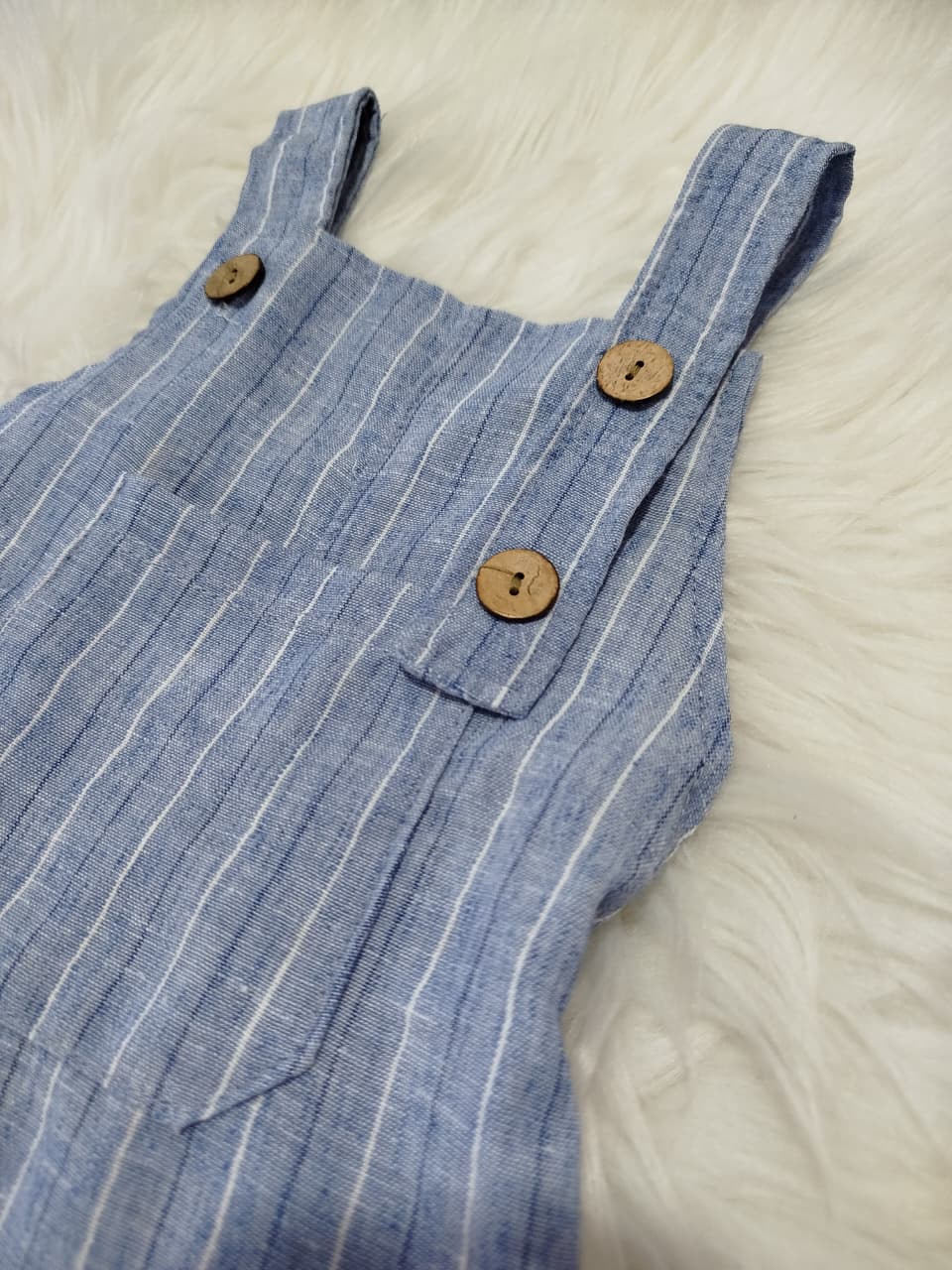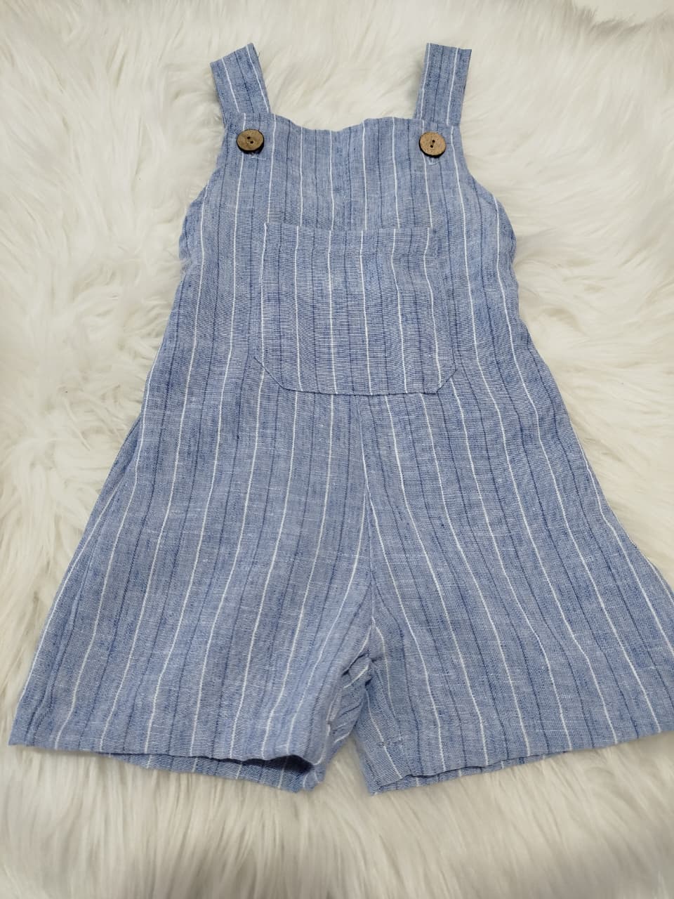 Enterito corto de lino, con bolsillo en la pechera. En las tiras tiene dos pocisiones de botones para poder adaptar el largo de tiro.