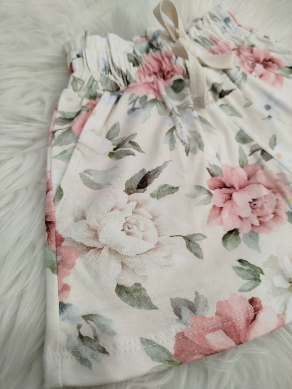 Short de algodón soft estampado, con bolsillos. Cintura elastizada con lazo para atar.