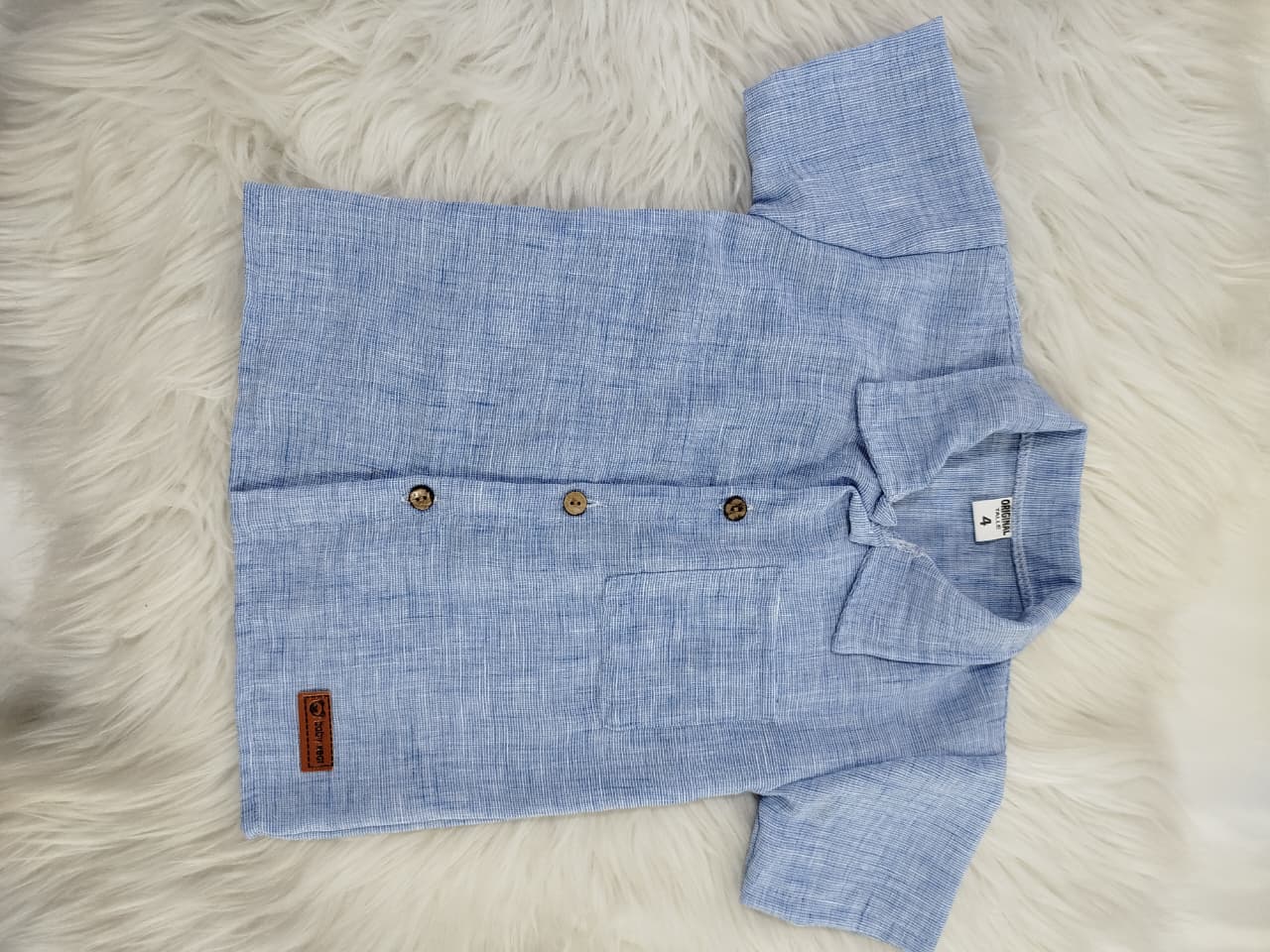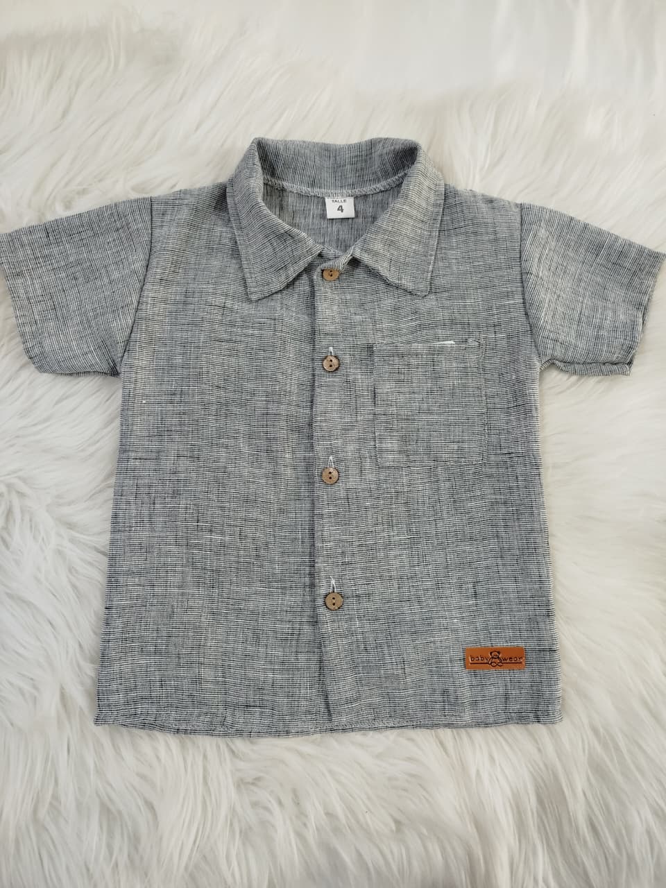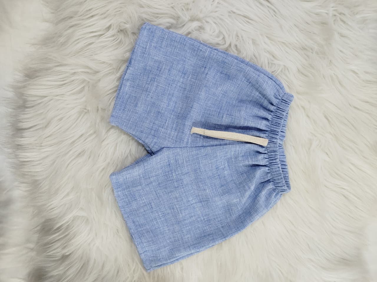 Conjunto de lino, camisa con botones de madera, bolsillo en pecho izquierzo. Short con cintura elastizada.