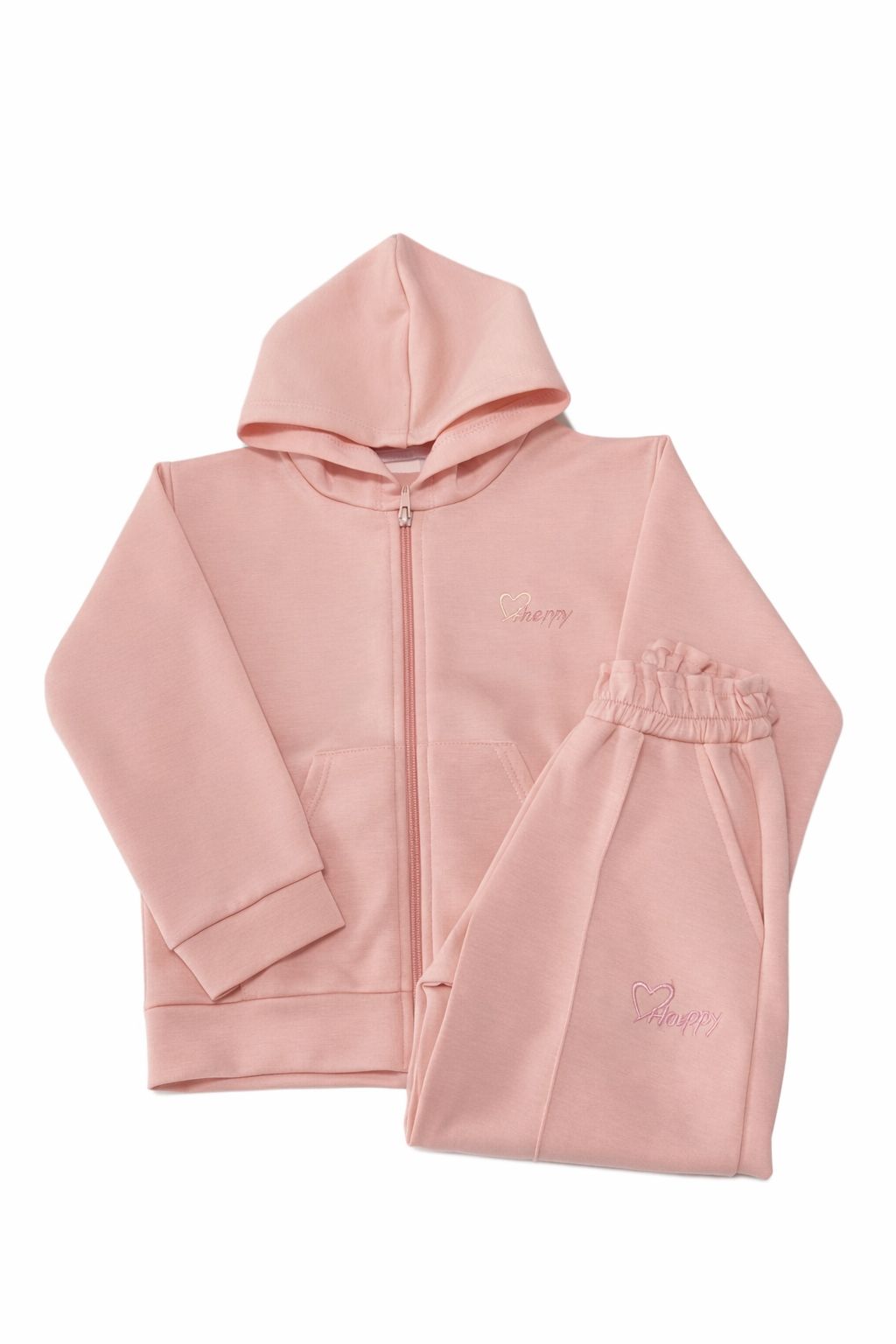 Conjunto de acetato soft, campera con capucha y palazo. Puños en manga y cintura de la misma tela.