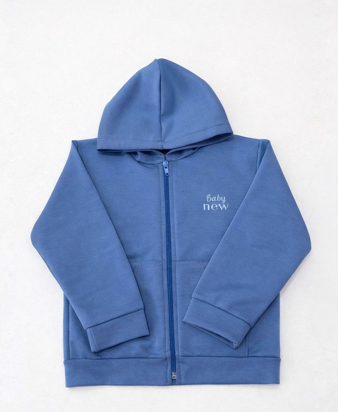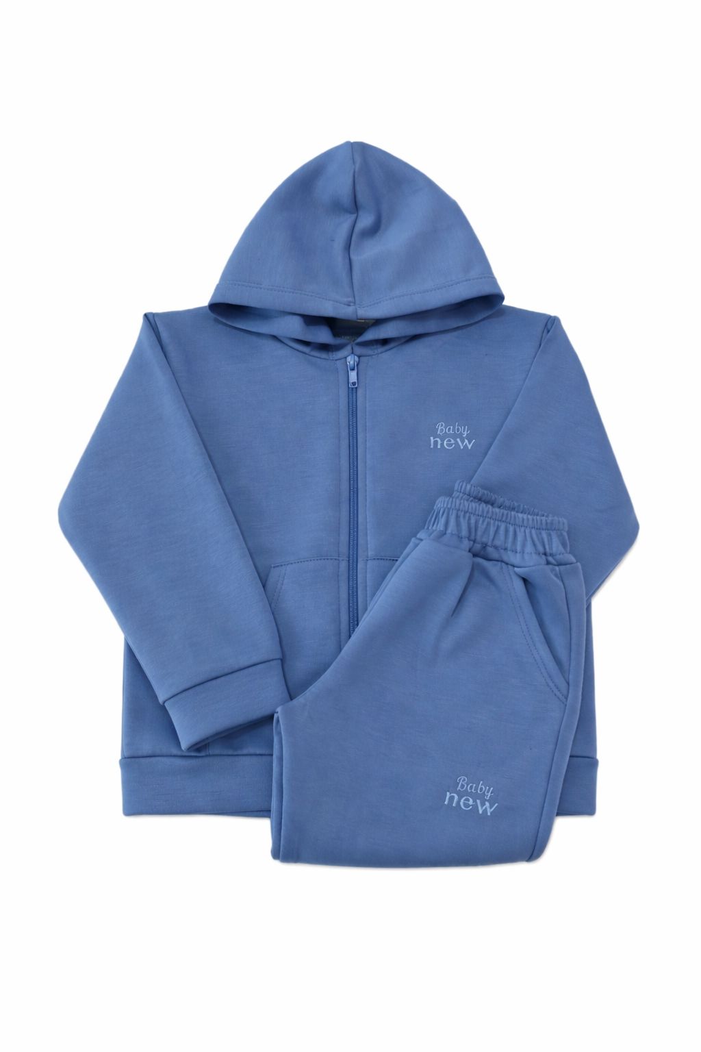 Conjunto de acetato soft, campera con capucha y babucha. Puños en manga, pierna y cintura de la misma tela.