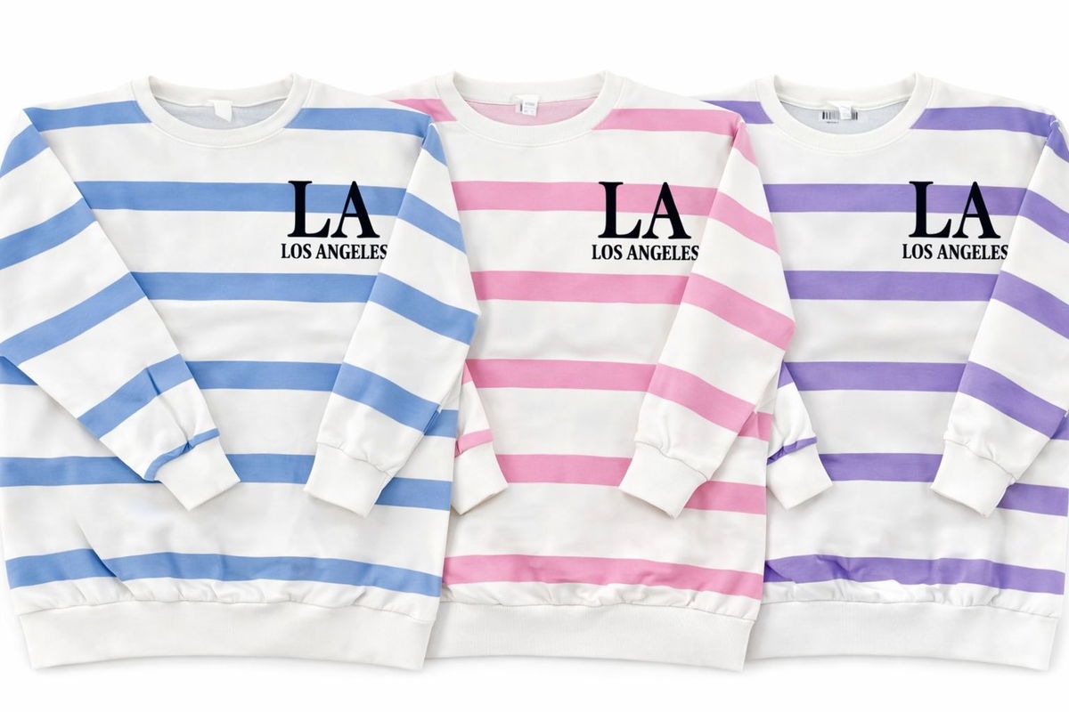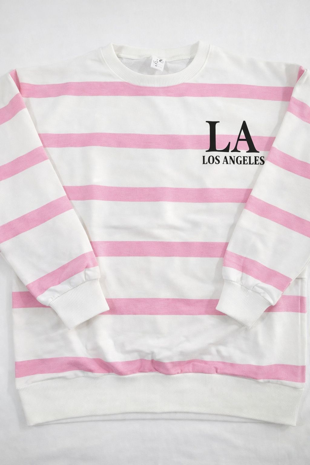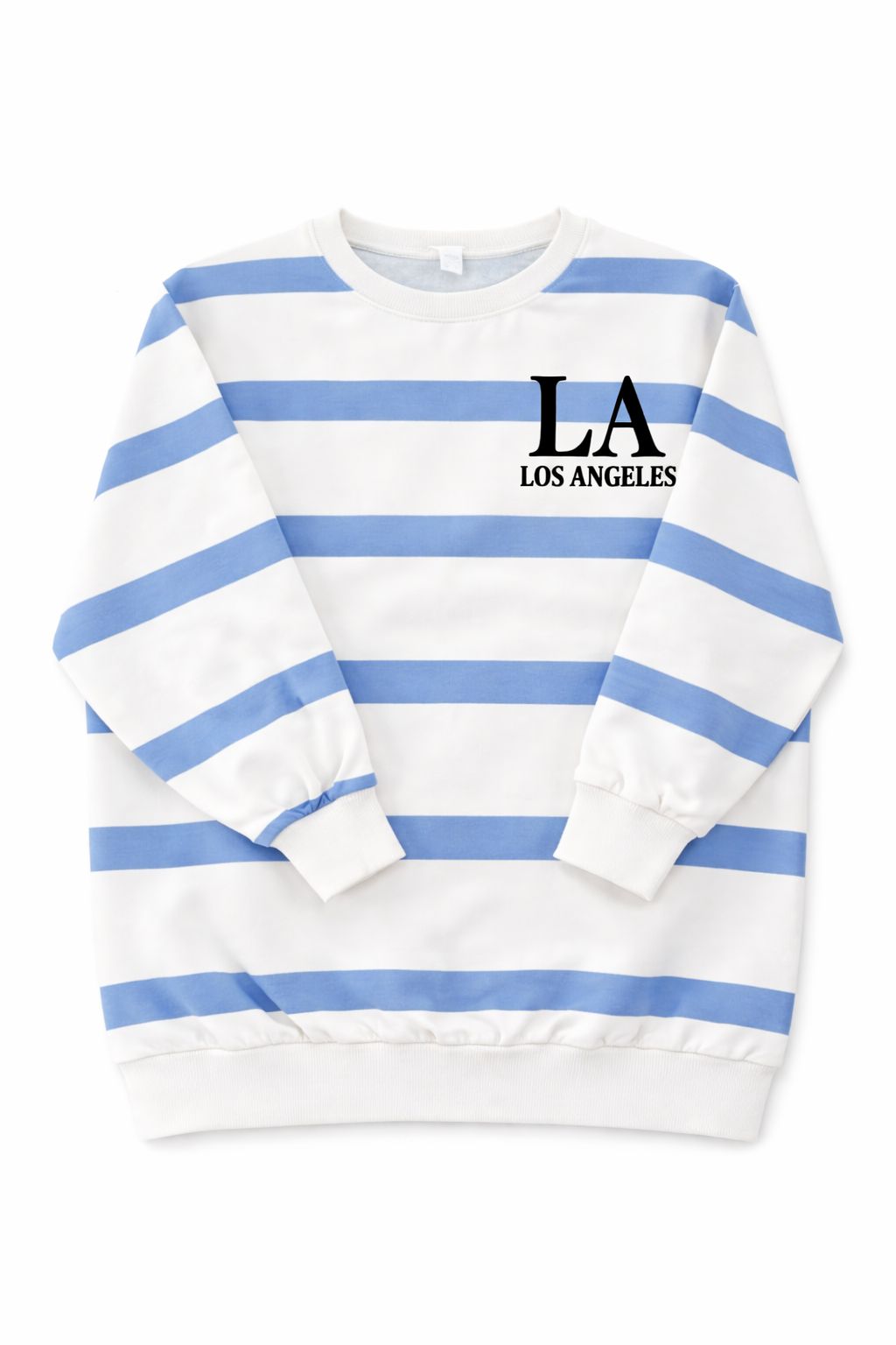 Buzo de algodón rústico rayado, con estampa. Reep en cintura y puños de manga.