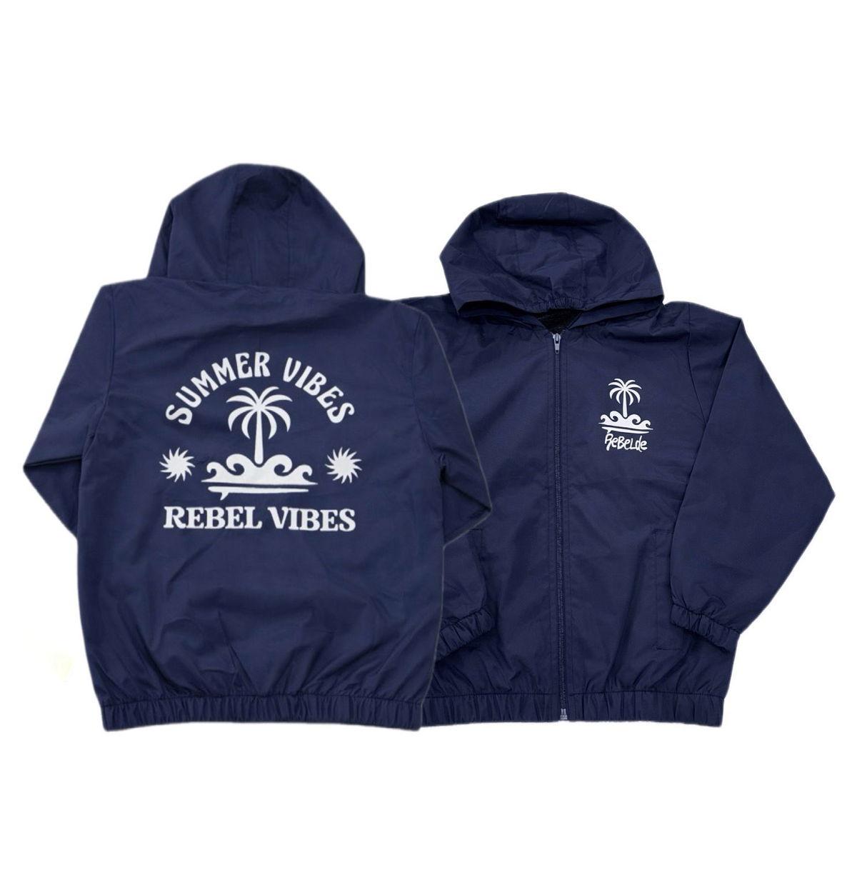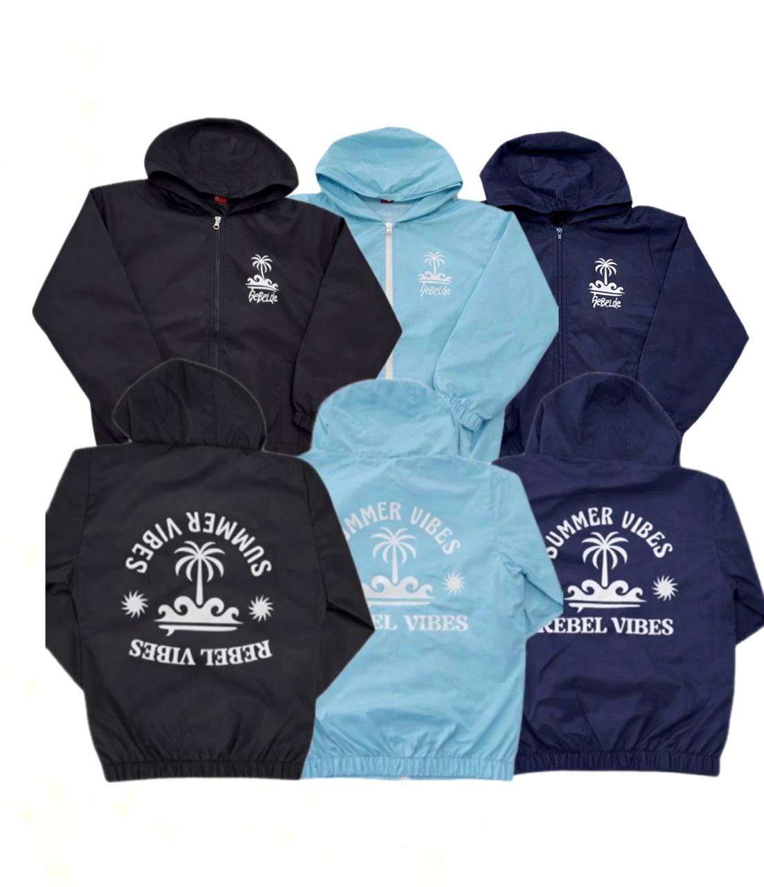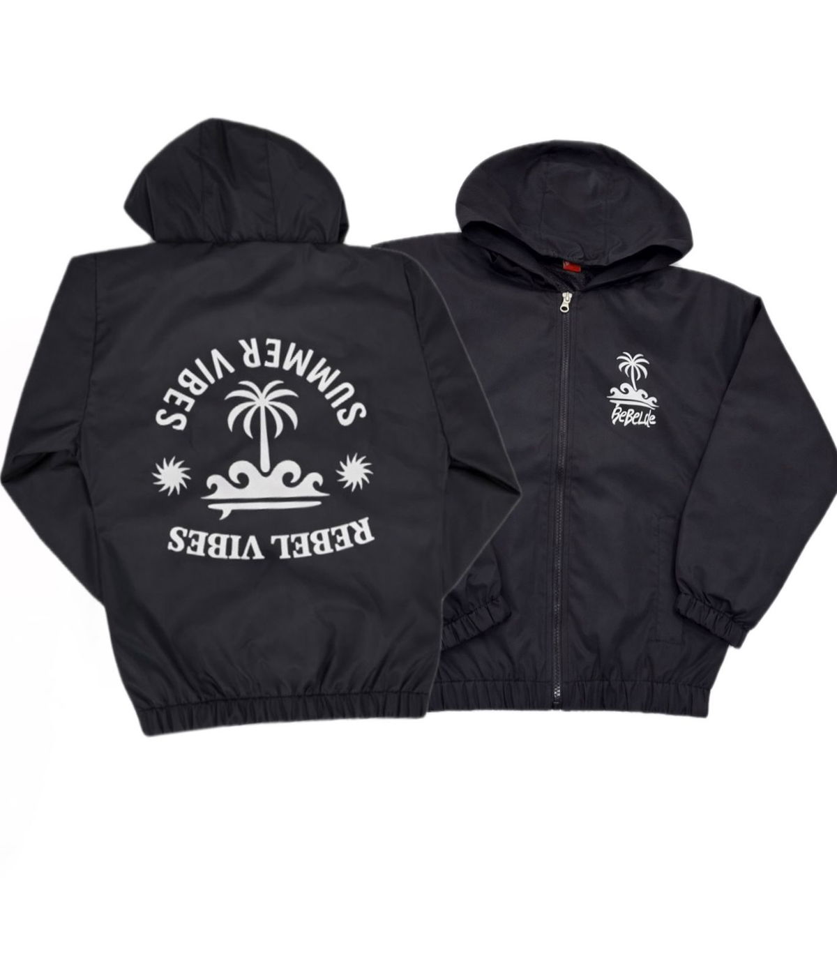 Rompevientos impermeable con forro interno, bolsillos y capucha.